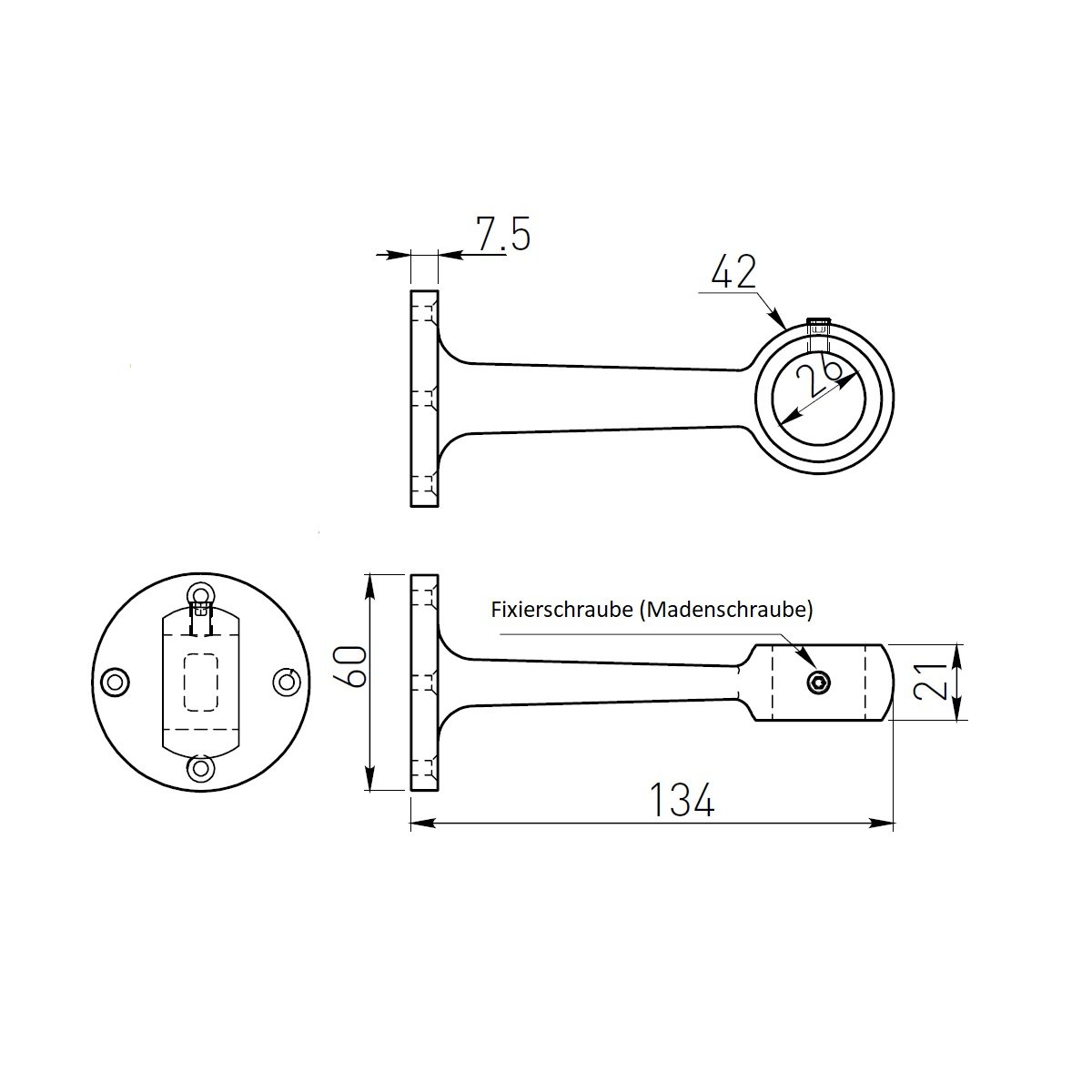 - Stärke der Befestigungsplatte: 7,5mm