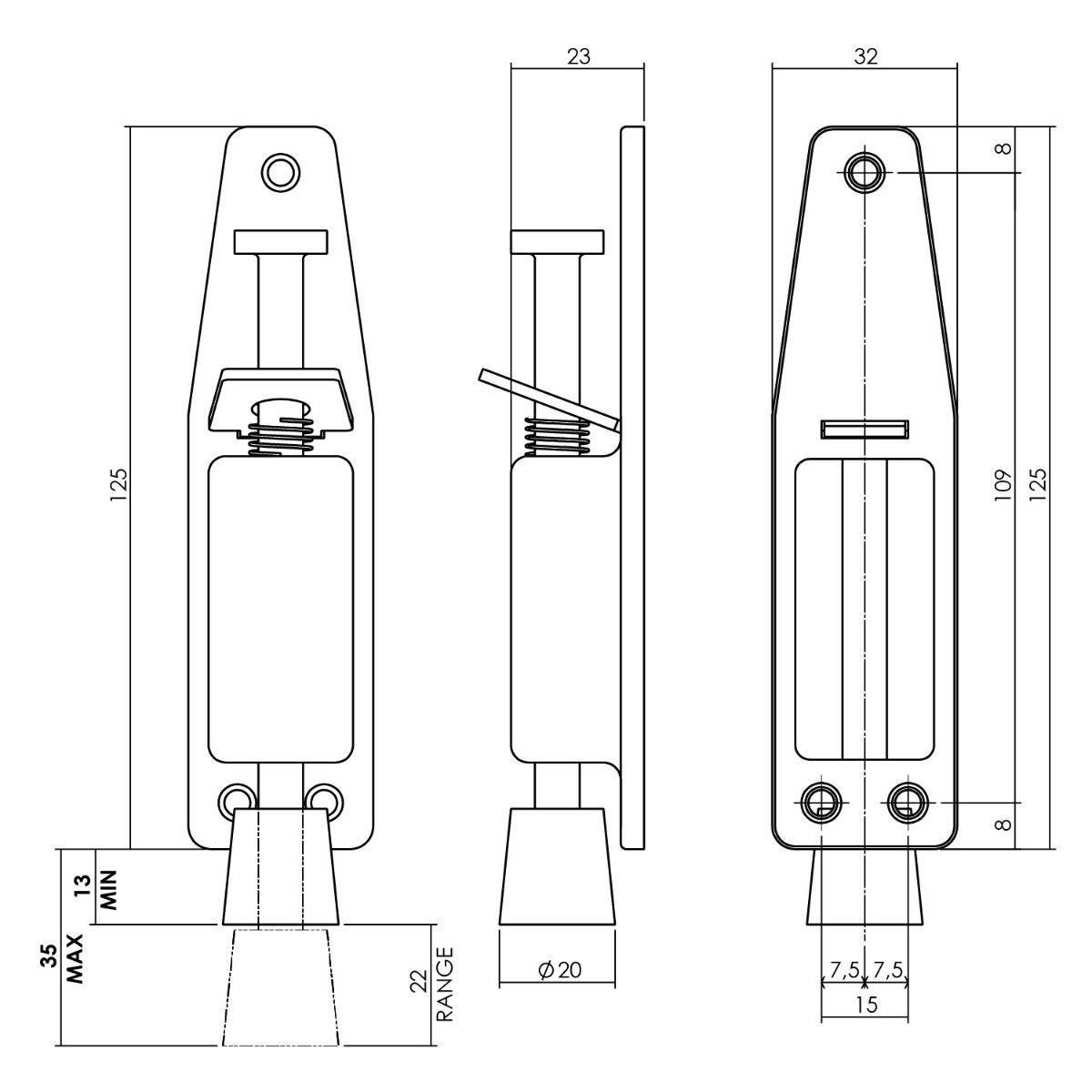 Dieser robuste Türfeststeller aus Edelstahl hält die Innen- oder Außentür in jeder beliebiger Position fest. Durch die Verwendung von Edelstahl hat dieses Produkt eine lange Lebensdauer und da es gebürstet wurde, hat es eine matte Ausstrahlung. Dieser Türfeststeller hat eine Höhe von 142 mm und kann einfach mit dem Fuß bedient werden.