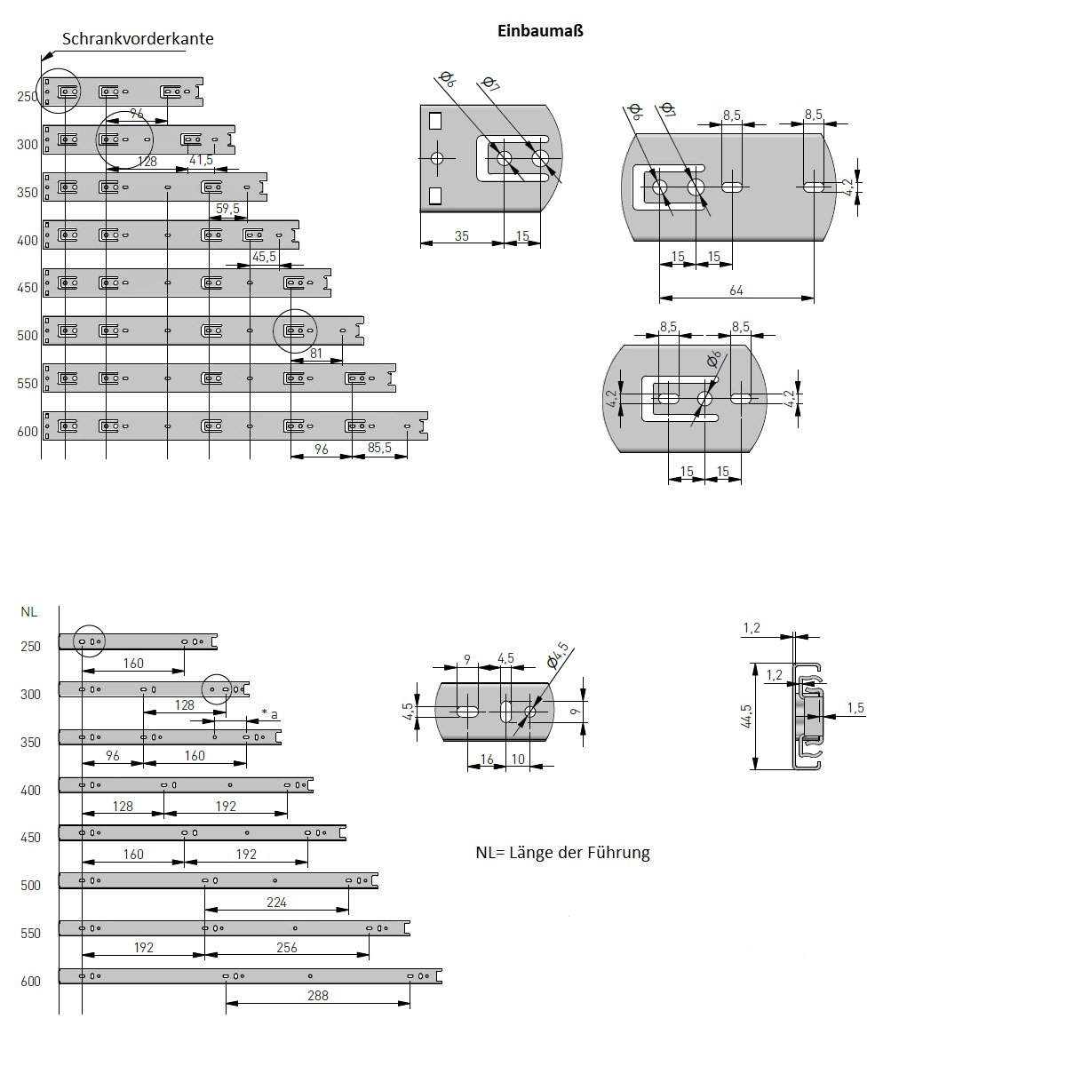 • Preis bezieht sich auf ein Paar Schubladenauszüge