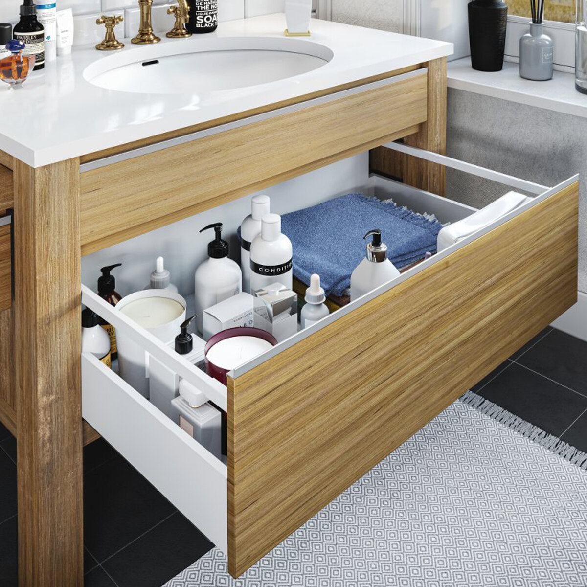 - Freier Zugriff auf Schubladeninhalt dank Vollauszug der Unterflurführungen