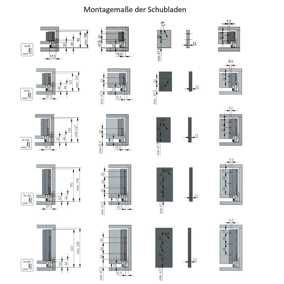 - 69mm Höhe (Backofenschubladen) nur in der Nennlänge 450mm und 500mm erhältlich